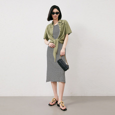 条纹背心拼接连衣裙两件套套装女2024春季新款9002