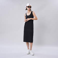 假两件U领条纹显瘦中长款无袖背心连衣裙女2023秋新款7508