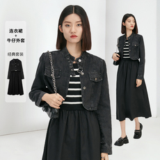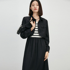 法式截短外套条纹背心连衣裙套装女2024早春新品通勤9001