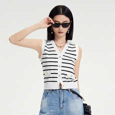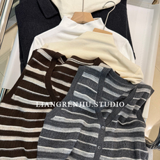 学院风经典条纹针织衫马甲女2024秋季新款薄款背心21418