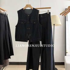 。软料牛仔马甲+直筒裤两件套套装2096XR