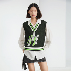 学院风字母提花毛织背心女2024夏季新款无袖马甲外穿20728
