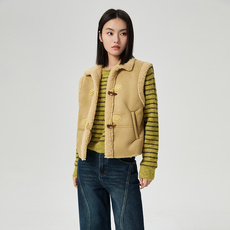 商场同款冬季新款时尚百搭简约纯色羽绒棉羊羔毛时尚马甲女